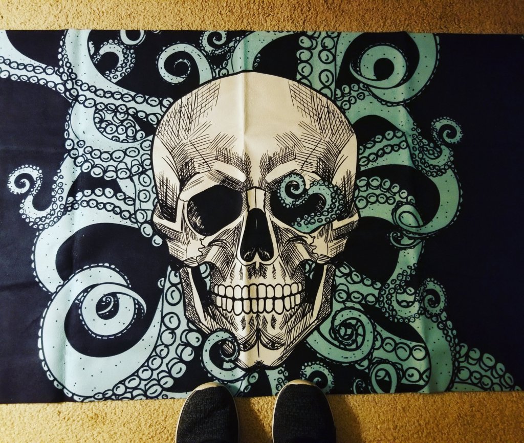 Kearney: Perfecting my brainstorming yoga mat game. #amwriting #Romance #nextheroinetattoo 💀🤘🏽🖤